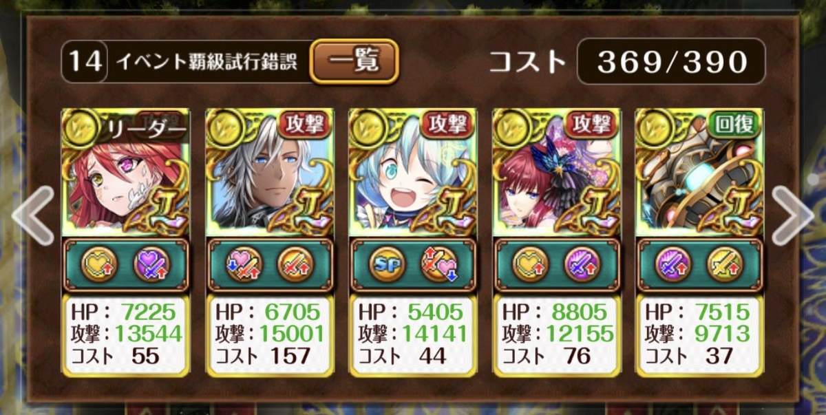 さすがに4戦目の水吸収でバリアが破れない事象が出るとは思ってませんでした・・・。ということで攻撃力重視。バリアさえ破壊できればおねぇさんが沈めてくれるでしょう。ボスは今のところ撃ち漏らしはないようです。