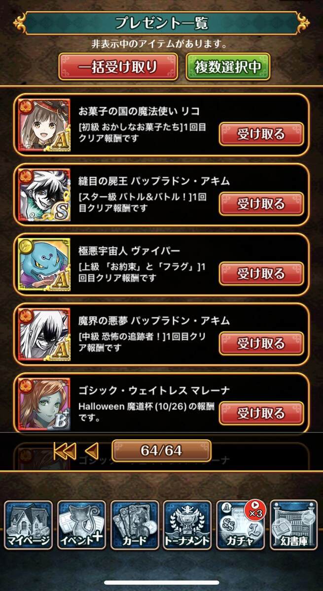 ぱっと見戦力になりそうなのは5人くらいかな?最近はセット商法なので面子的には逆に昔の未消化のやつを粉砕するのに意外と役立つのがいるかも。